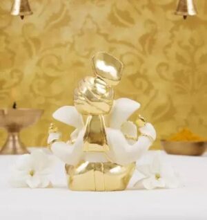Gold plated off white pagdi Ganesha Lord Ganesha