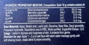 The natural extracts of revitalizing herbs such as ghritkumari (aloe vera) and lemongrass gently cleanse and nourish the skin tissues. Pudina, neem, tulsi and haldi are natural disinfectants that protect the skin from germs and act as astringents. The herbal preparation allows for a smooth shave with few injuries. No burning. Good for sensitive skin. The soft fragrance lingers long and makes you feel fresh all through the day. Protects in case of micro cuts and from germs. Makes complexion fresh, smooth and attractive.